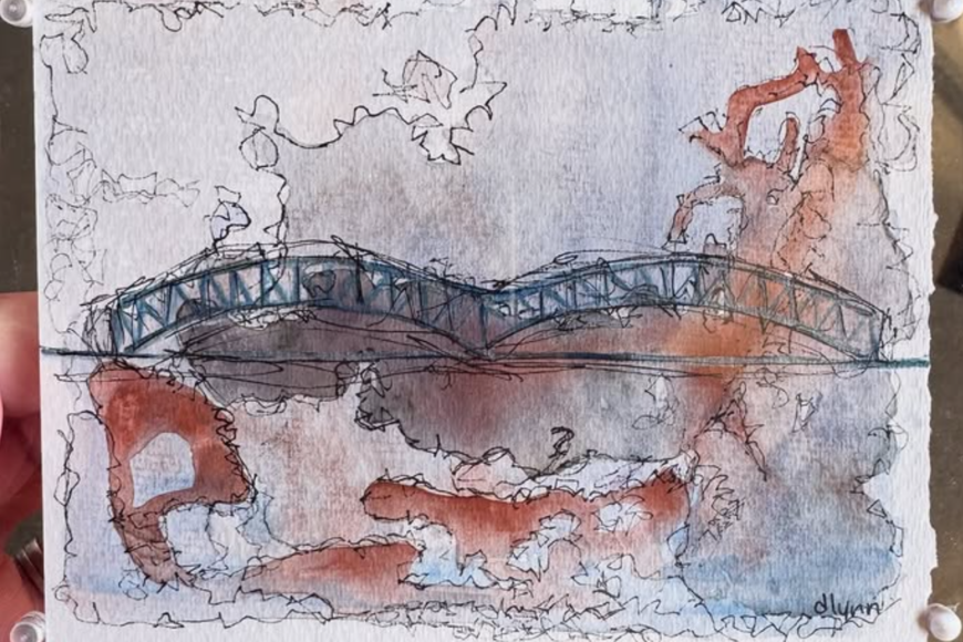 Her current practice centers on watercolors, inks, and acrylics, often inspired by her fascination with birds and bridges. While both subjects are beautiful, bridges also evoke a personal fear, a tension she embraces as part of her creative process. Through her art, Deb blends passion, purpose, and a touch of whimsy, creating pieces that reflect both her inner world and her commitment to meaningful causes.